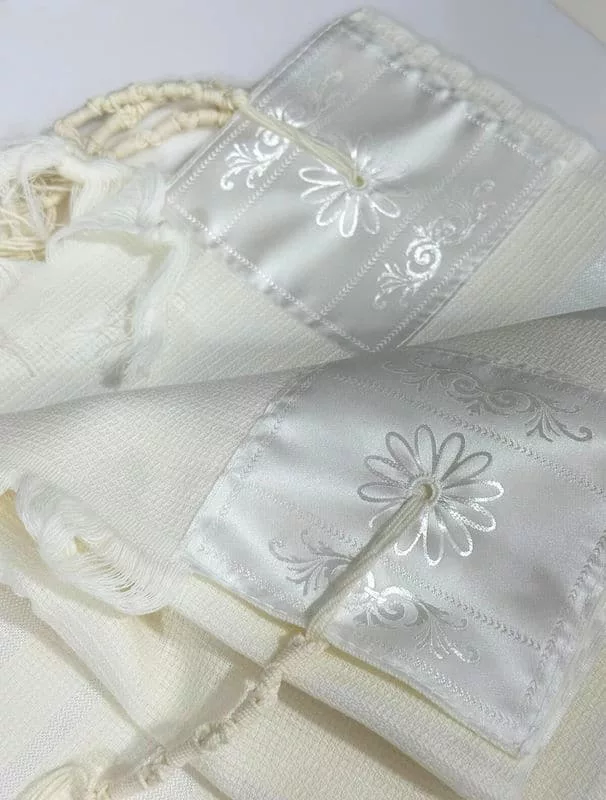 טליתות – טלית לבנה מהודרת 100% צמר רחלים טהור נעים ואיכותי