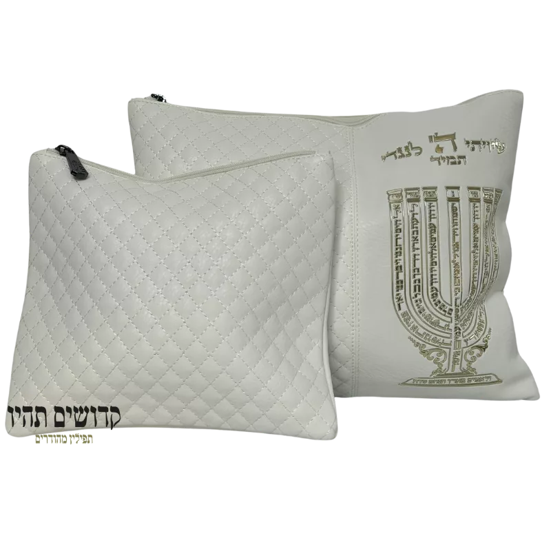 תיק לתפילין | כיסוי לטלית ותפילין עם שם | למנצח בצורת המנורה